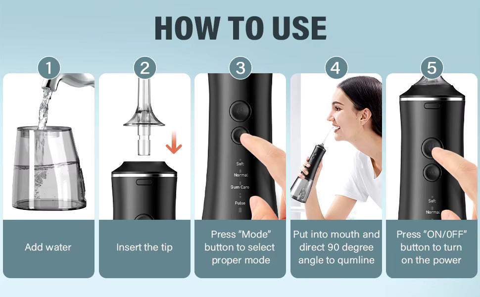 منظّف الأسنان بالضغط يعطيك قوة تنظيف مركّزة يزيل بقايا الطعام بين الأسنان، ينقص الجير، ويخلي الفم ديما نظيف